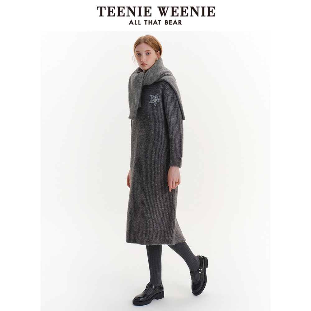 TeenieWeenie小熊奥莱春季时尚舒适宽松长款针织连衣裙保暖女