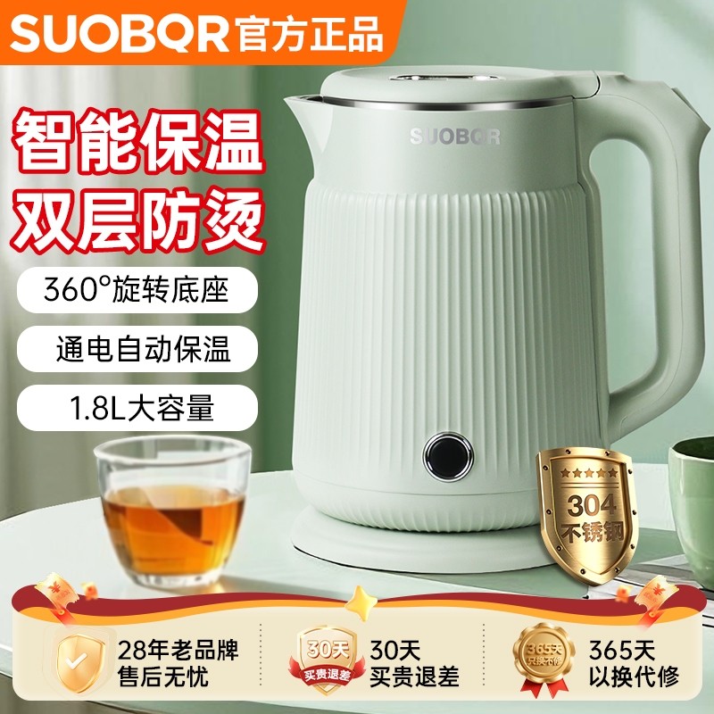 苏泊电热水壶304不锈钢电水壶自动断电保温烧水壶家用恒温大容量