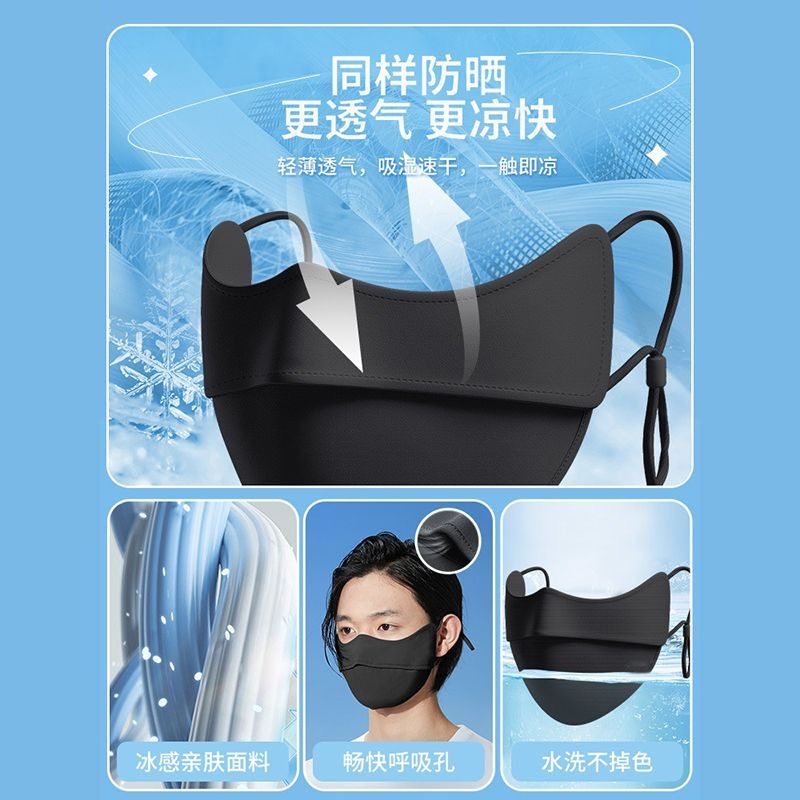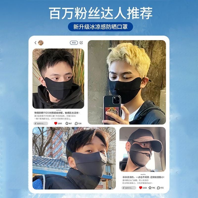防晒口罩男潮款夏季防紫外线男士遮阳冰丝面罩黑色护眼角遮全脸女