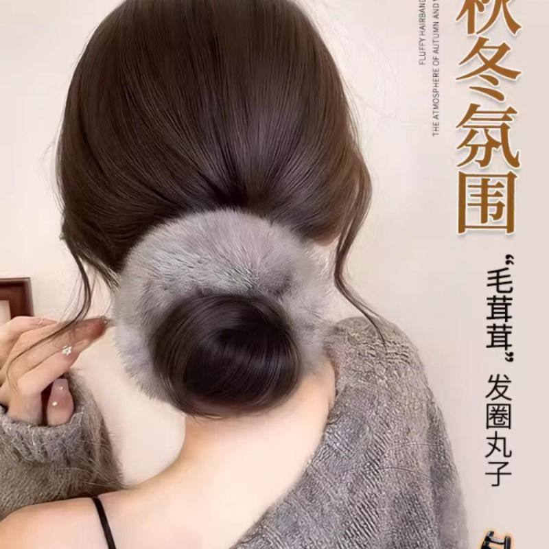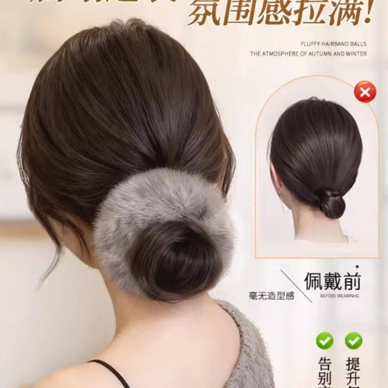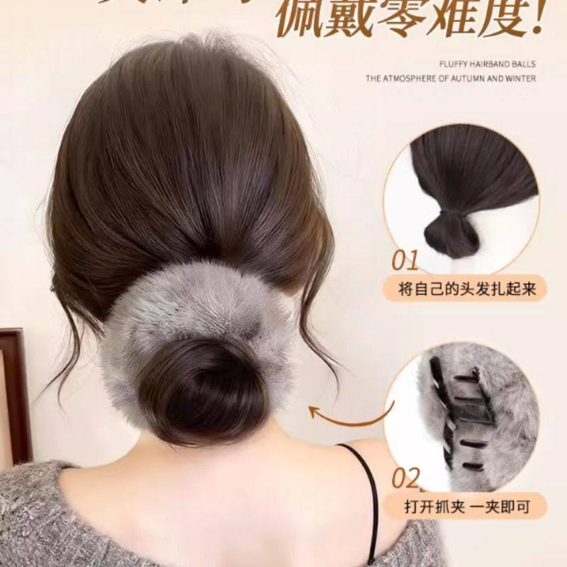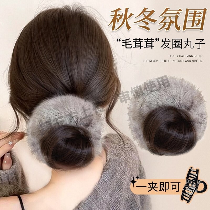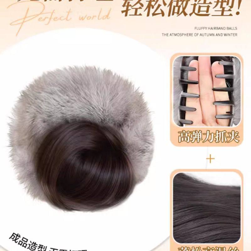 低丸子头假发抓夹毛绒发圈花苞头盘发神器后脑勺蓬松增发量假发包