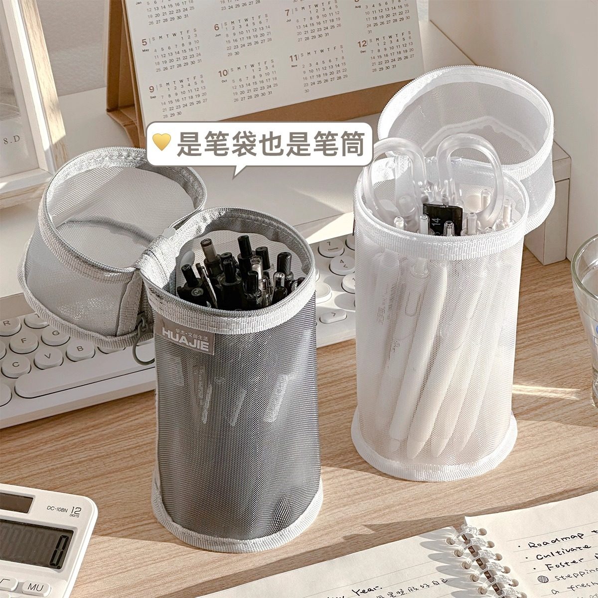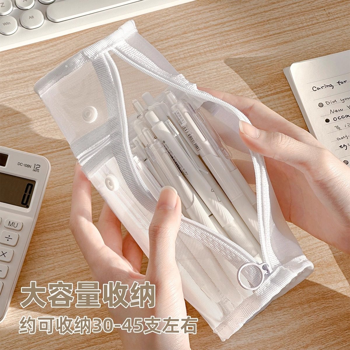 透明网纱笔袋高颜值大容量学生铅笔盒可站立式笔筒2025新款文具袋