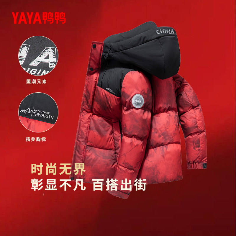 鸭鸭轻薄羽绒服男士2025年秋冬反季短款保暖休闲时尚连帽鸭绒外套