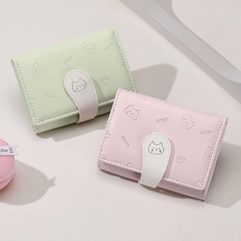 日韩简约钱包小众卡通可爱猫咪钱包2024新款小清新三折多卡位卡包