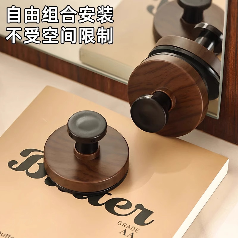 胡桃木纹吸盘旋钮挂钩家用厨房旋转壁挂式置物架免打孔收纳架挂架