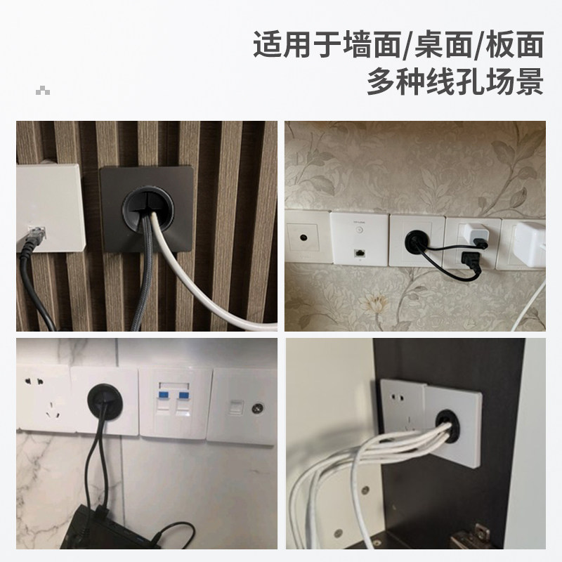 家用86型出线孔面板墙壁电视背景墙电脑出线圆孔穿线孔盖板网线