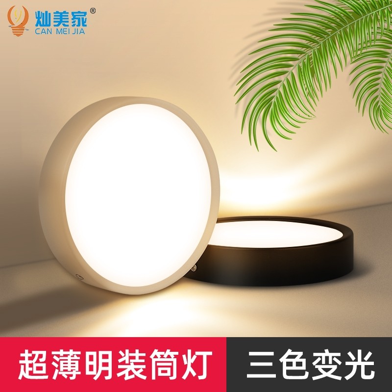 灿美家led超薄明装筒灯射灯新款客厅家用商用桶灯三色变光圆形灯