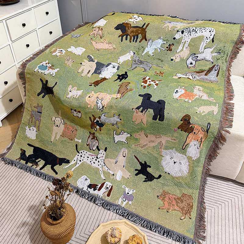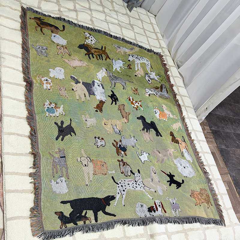 狗狗乐园线毯棉线毯卡通可爱宠物狗狗毯子单人沙发铺毯盖毯