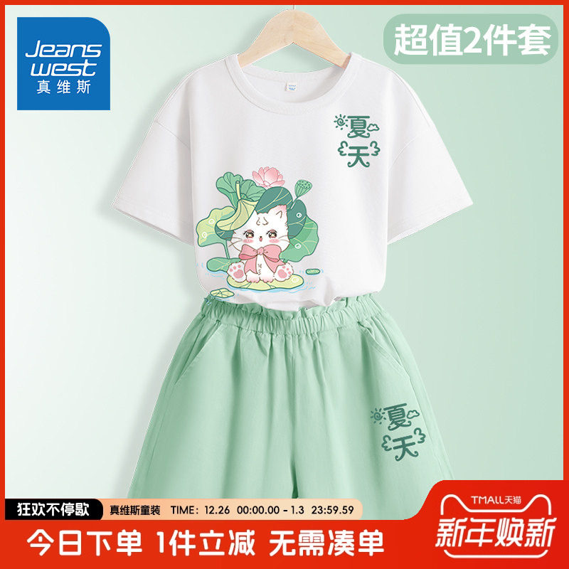 真维斯童装女童短裤夏季大童2025新款外穿纯棉短袖儿童夏套装夏装