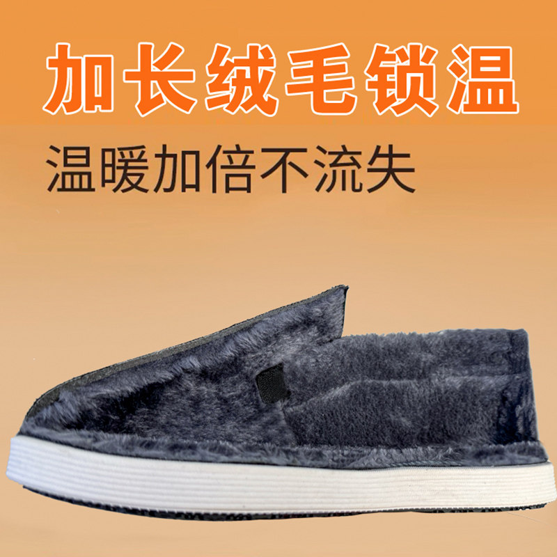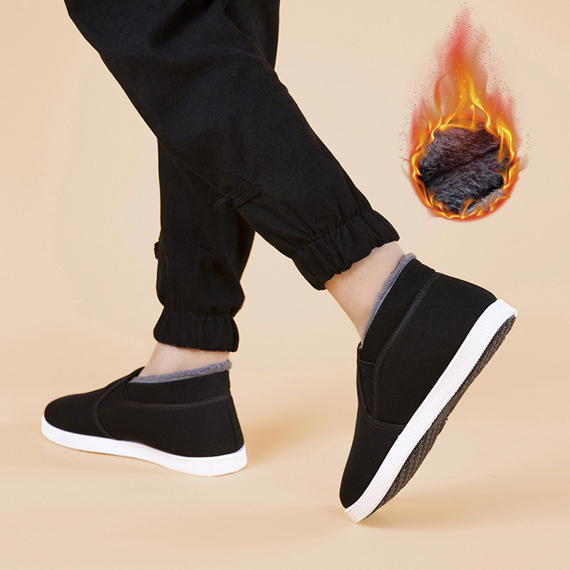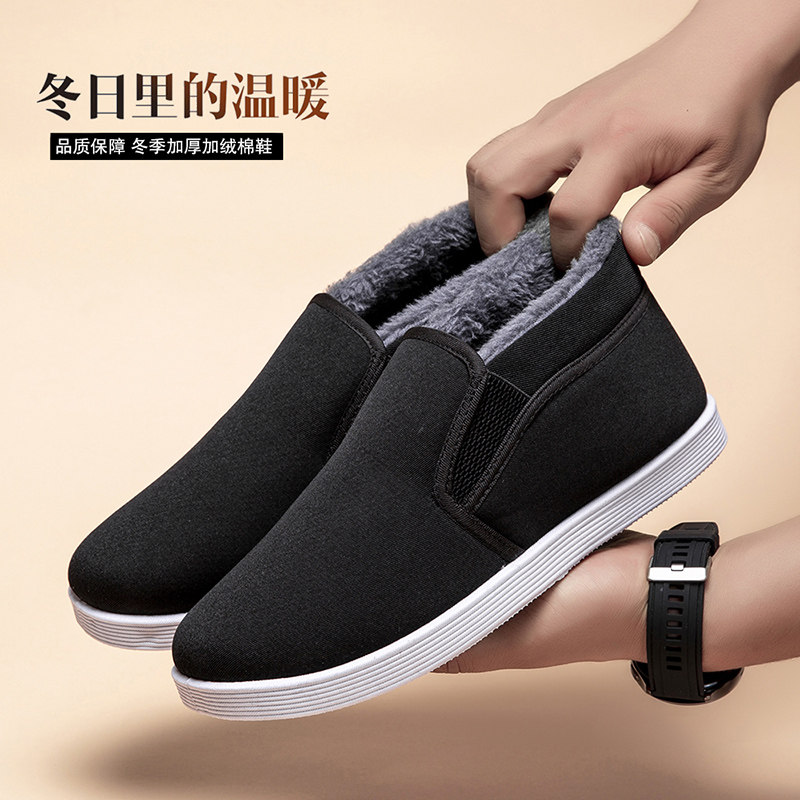 冬季高帮棉鞋防滑一脚蹬加绒加厚保暖棉靴老人工作老北京布鞋防水