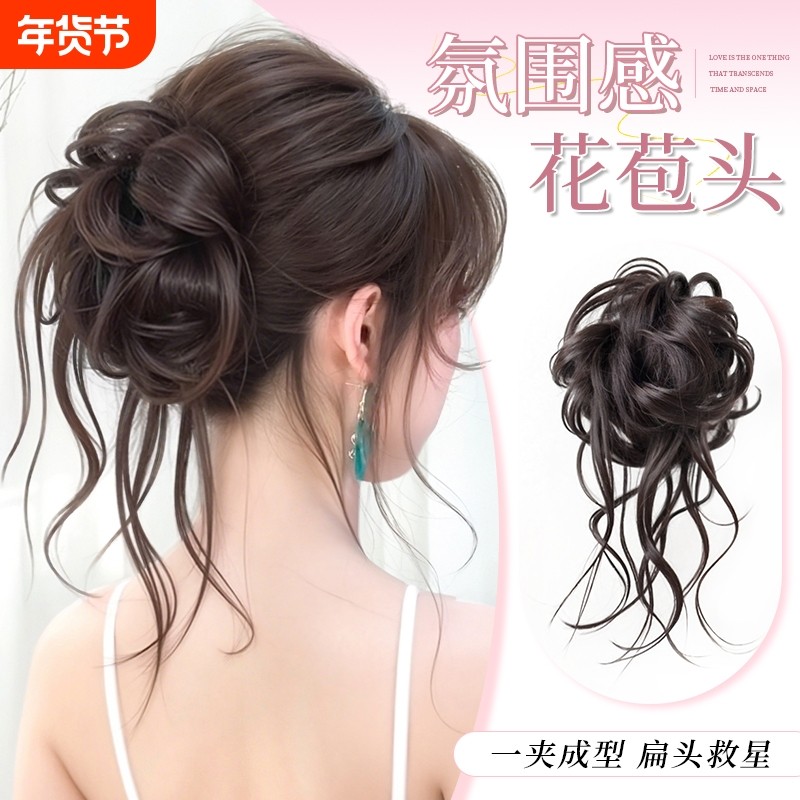 龙须丸子头假发发圈仿真发花苞头盘发神器抓夹蓬松假发包一体式