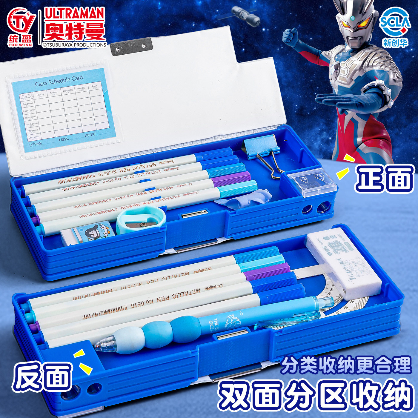 奥特曼小学生男孩款铅笔盒多功能双面一年级文具盒简约大容量哪吒文具笔盒2年级炫酷高科技女孩款磁吸文具盒