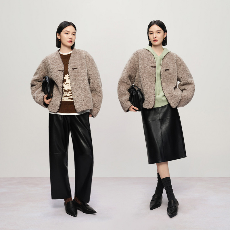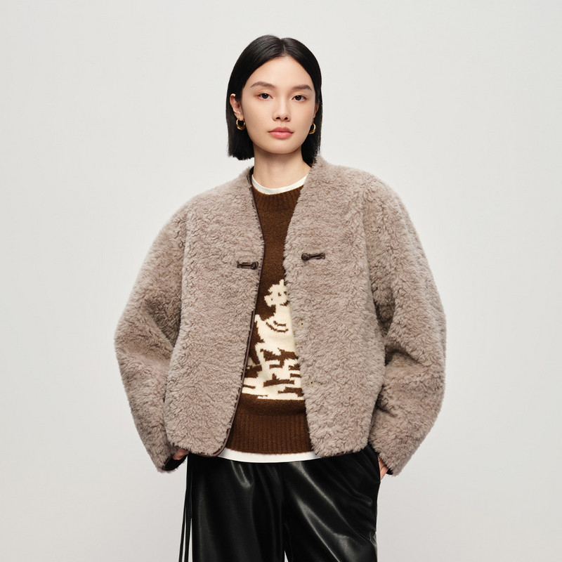 naivee纳薇25冬新款新中式盘扣100%绵羊毛皮草羊羔毛外套小个子