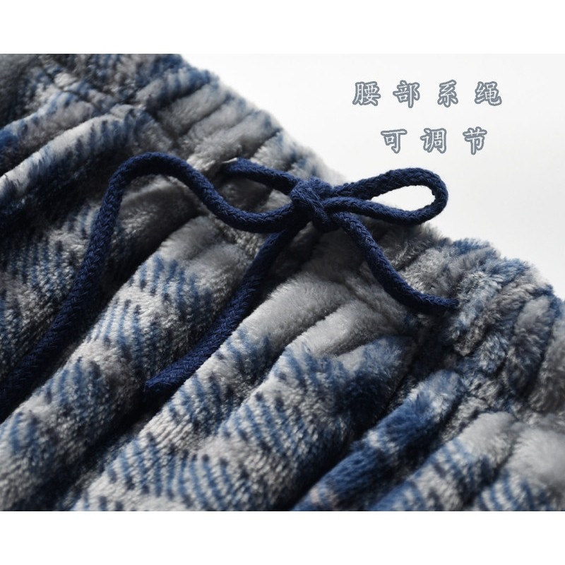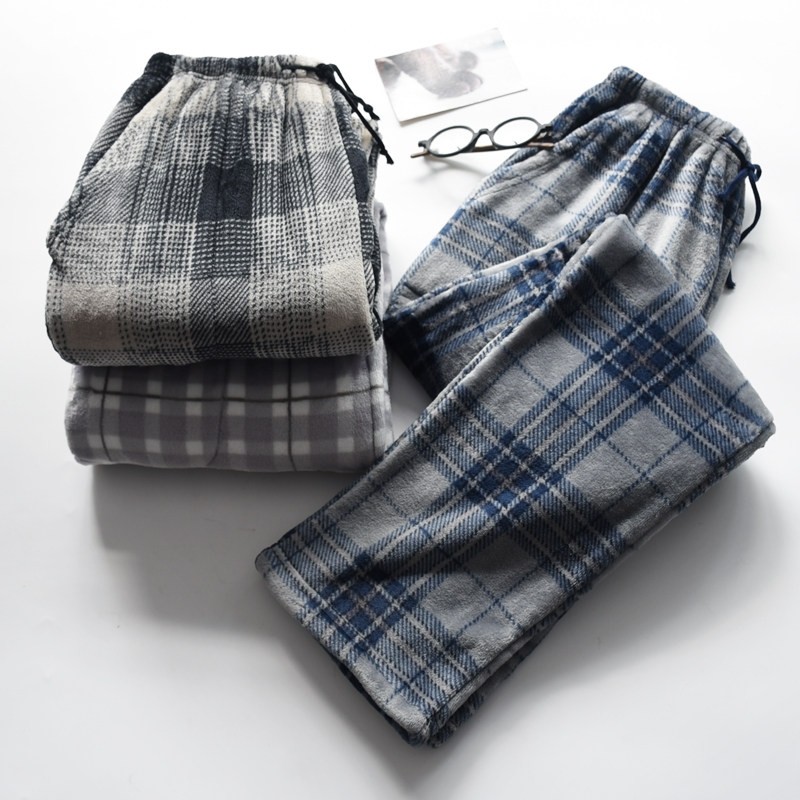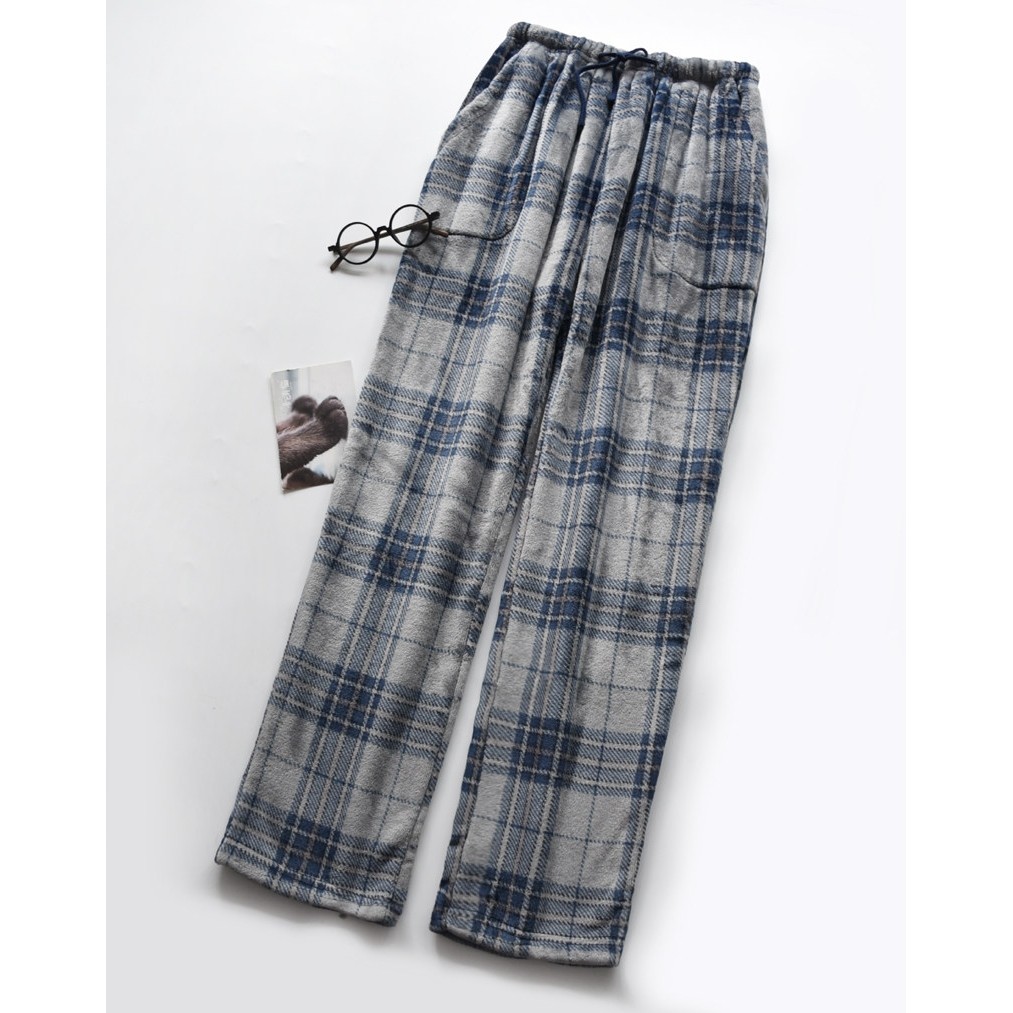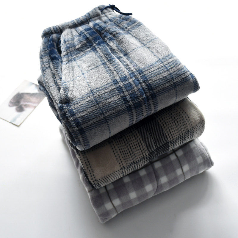 红豆日系格子睡裤男士秋冬季法兰绒加厚保暖加绒宽松大码家居裤长
