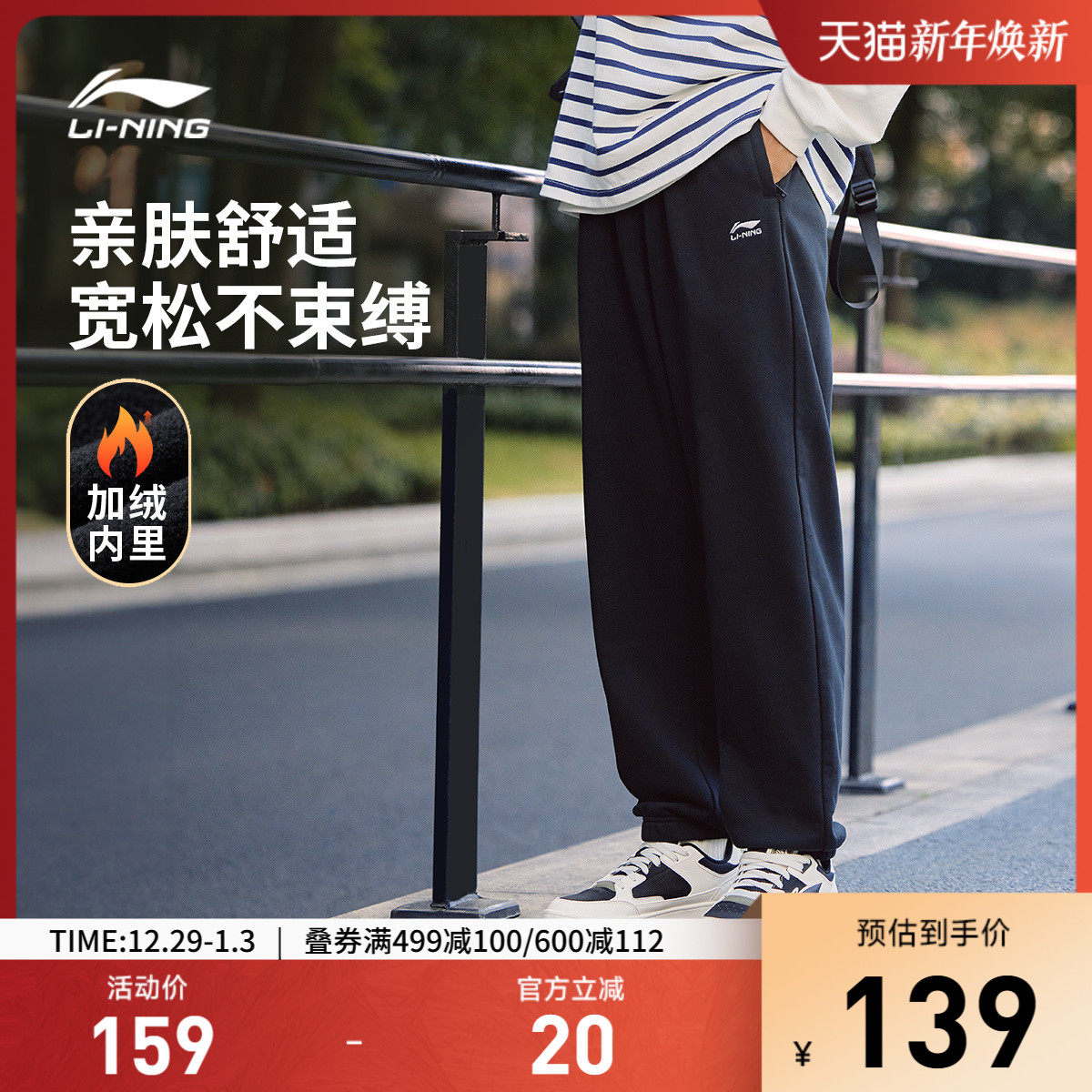李宁卫裤男士裤子秋季新款加绒长裤宽松黑色针织休闲裤运动长裤男