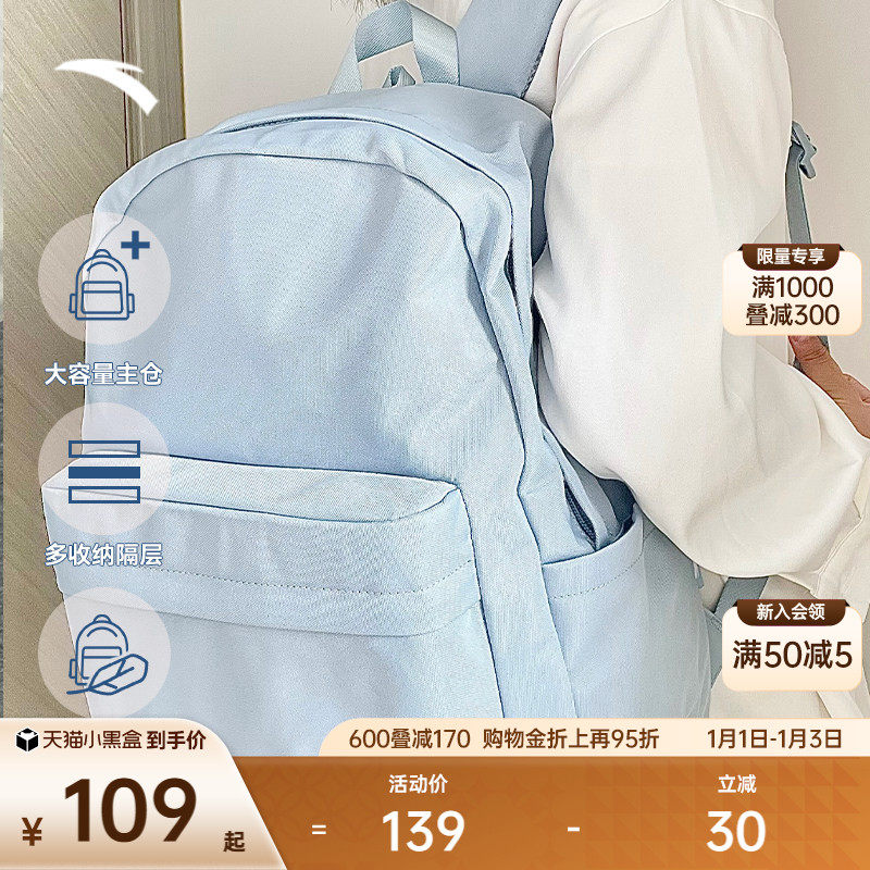 安踏双肩包学霸包学生电脑包中学生大学生大容量背包书包初中女生