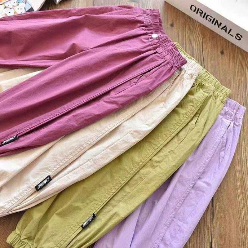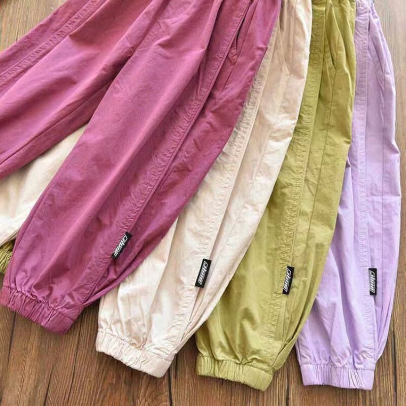 夏季薄款新品女童防蚊裤纯色夏季宽松休闲工装裤儿童宝宝束脚老爹