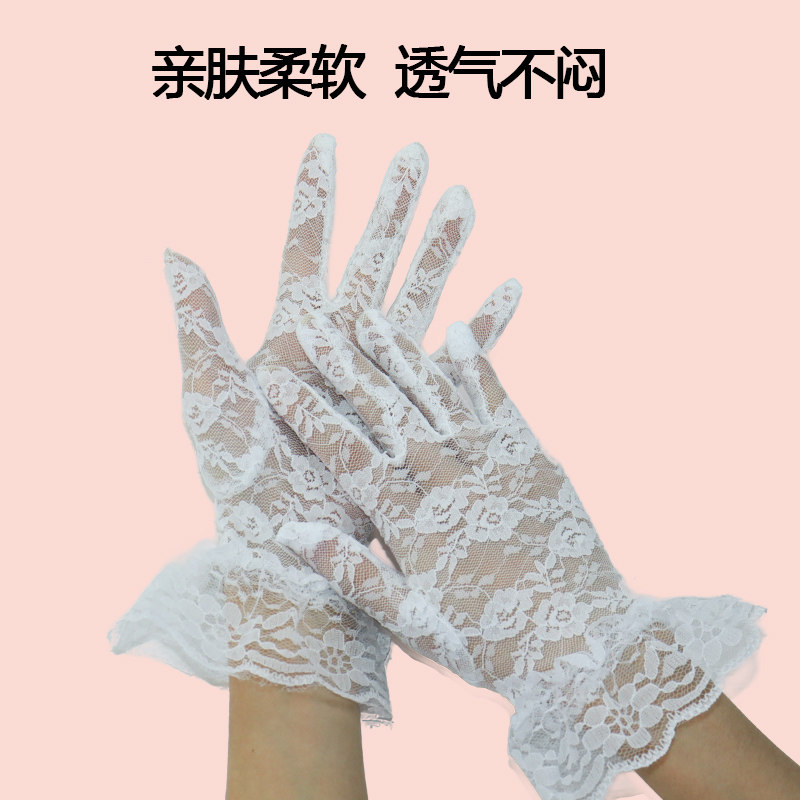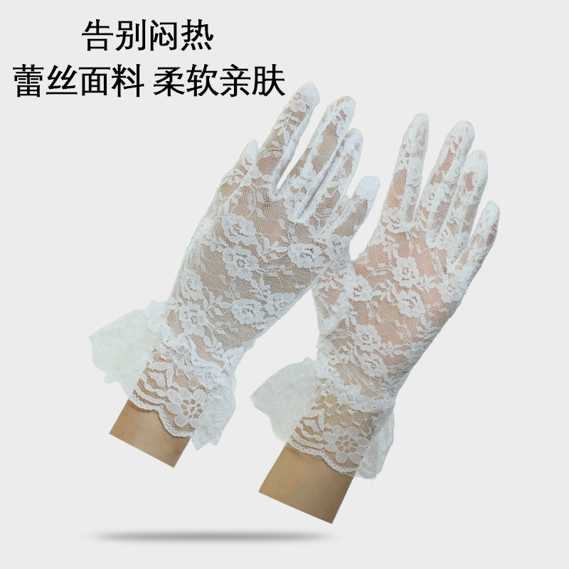 春夏季开车防晒蕾丝手套女士结婚薄款婚纱婚礼新娘礼仪红手套红色