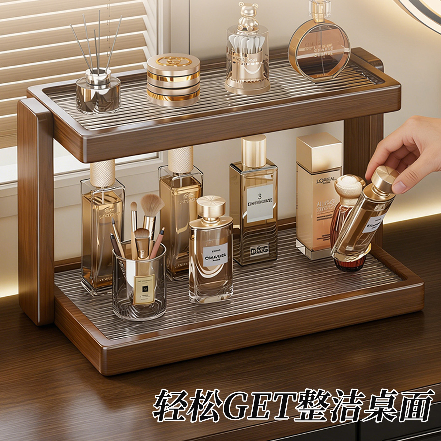 桌面阶梯化妆品置物架玄关首饰口红展示架梳妆台护肤品收纳整理架