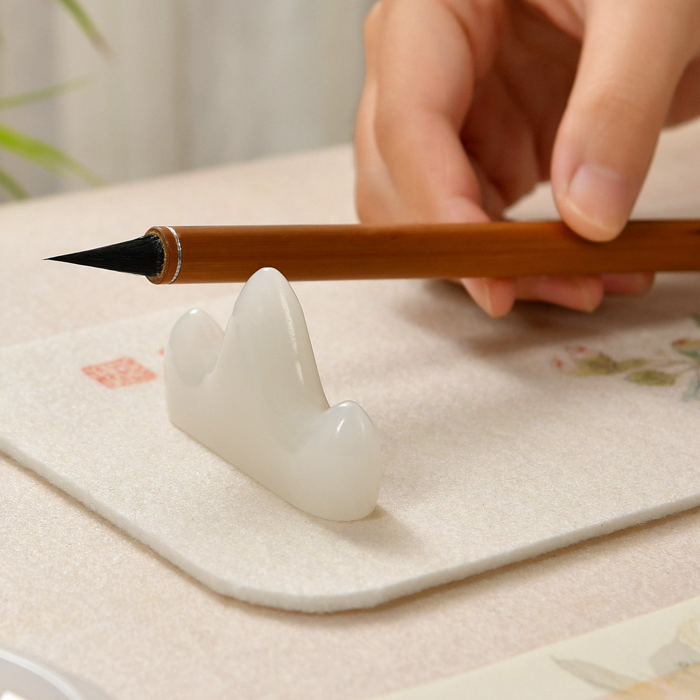 赵北玉石笔搁笔山天然阿富汗玉毛笔搁架毛笔托架笔架山放毛笔笔架镇纸书房茶台美学陈设文创礼品文房案头摆件