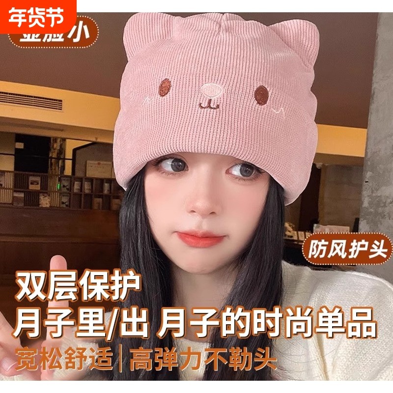 帽子女款2024产后春秋季孕妇新款月子帽可爱女士包头防风冷帽可戴