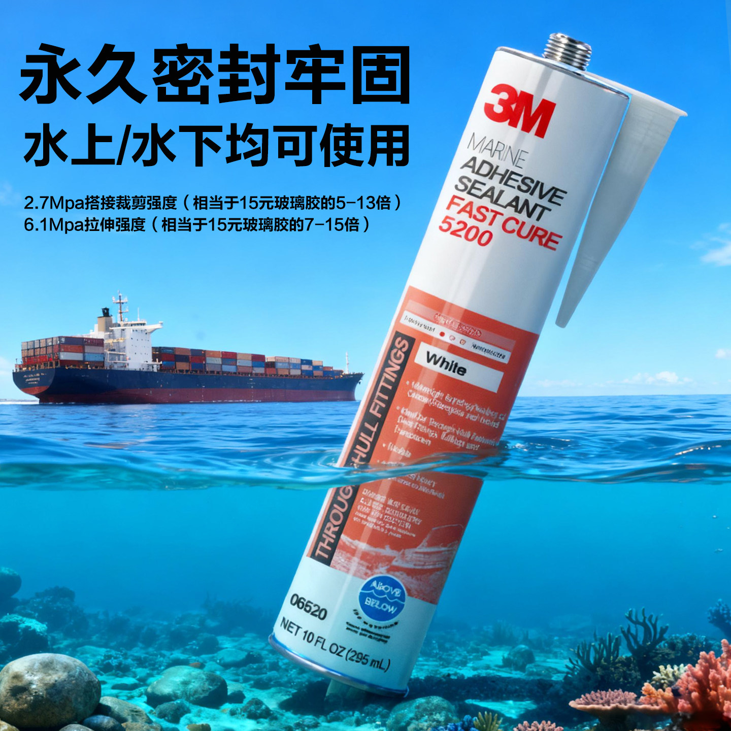 3M5200船用聚氨酯密封胶高强度耐海水海洋船舶甲板玻璃钢木材金属五金配件船体焊缝堵漏水下专用防水密封胶