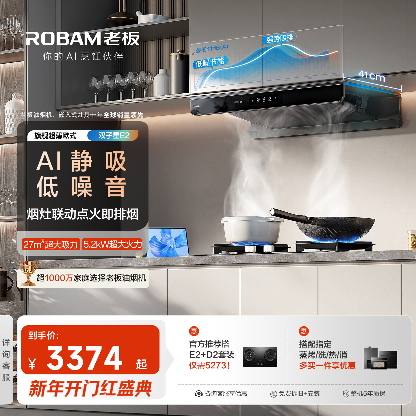老板双子星E2/E2P抽油烟机燃气灶一套大吸力超薄欧式官方旗舰正品