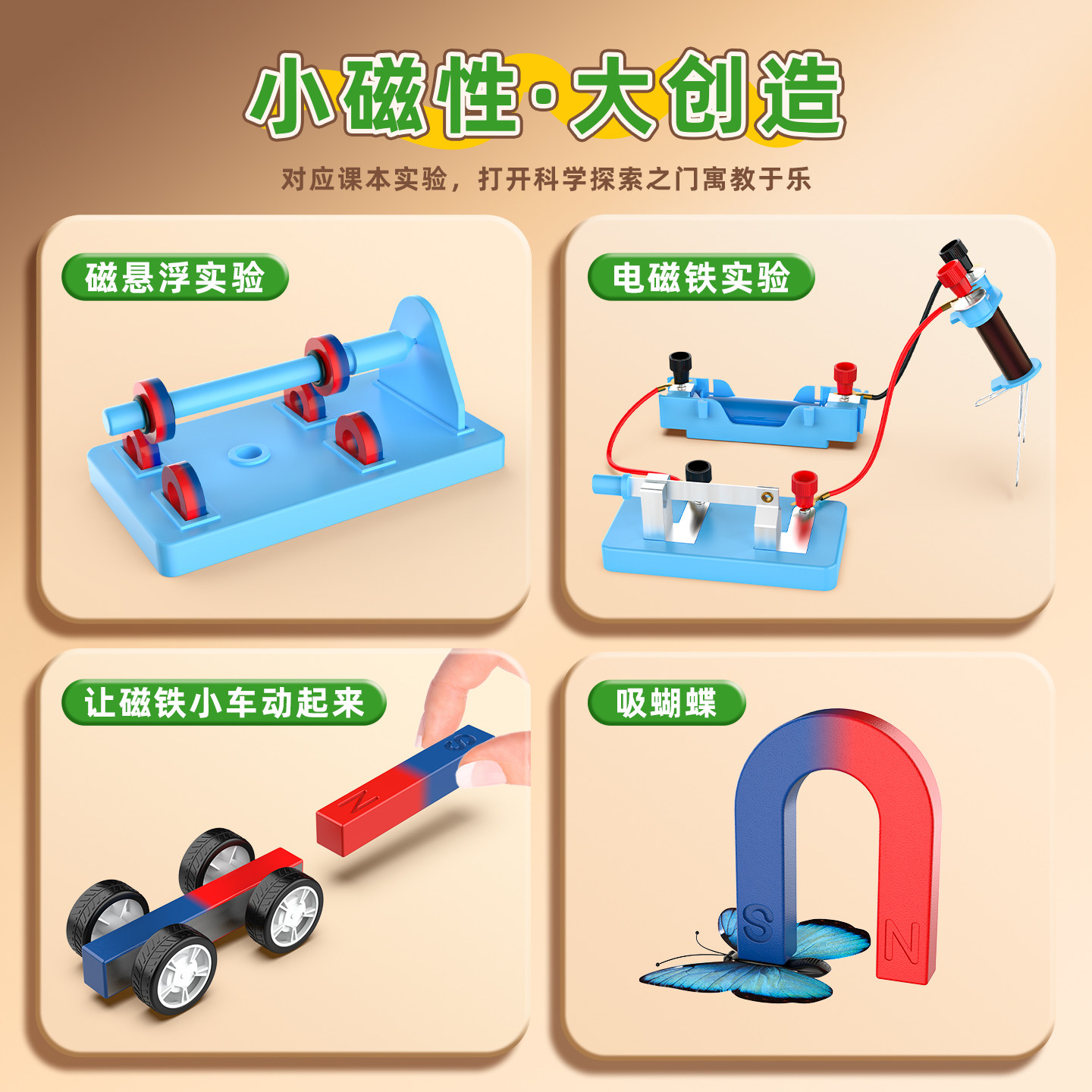 二年级磁铁实验套装物理小学生科学小实验套装强磁铁器材高强力吸铁石磁悬浮u型条形磁铁教具指南针趣味玩具