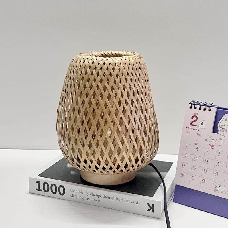 简约现代木艺布艺台 灯卧室床头挂件装饰北欧书房氛围LED温馨台灯