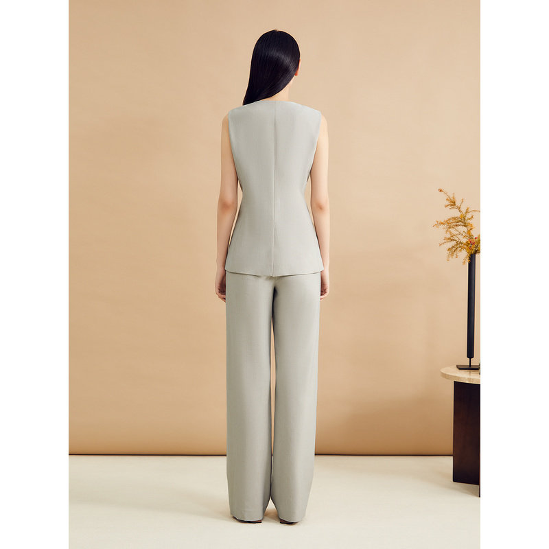 YINER音儿女装秋季亚麻法式背心都市风廓形小V领马甲