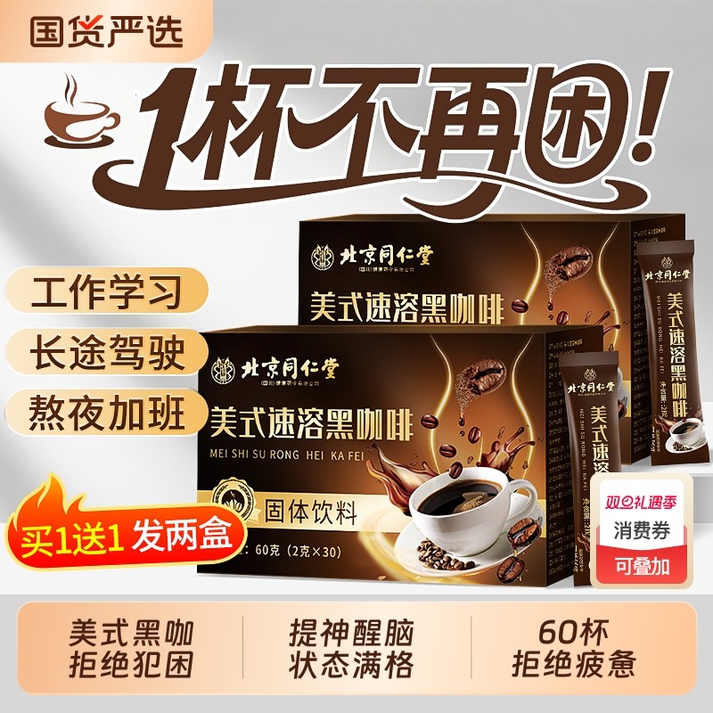 北京同仁堂黑咖啡美式速溶提神醒脑防犯困神器开车学生信盛堂正品