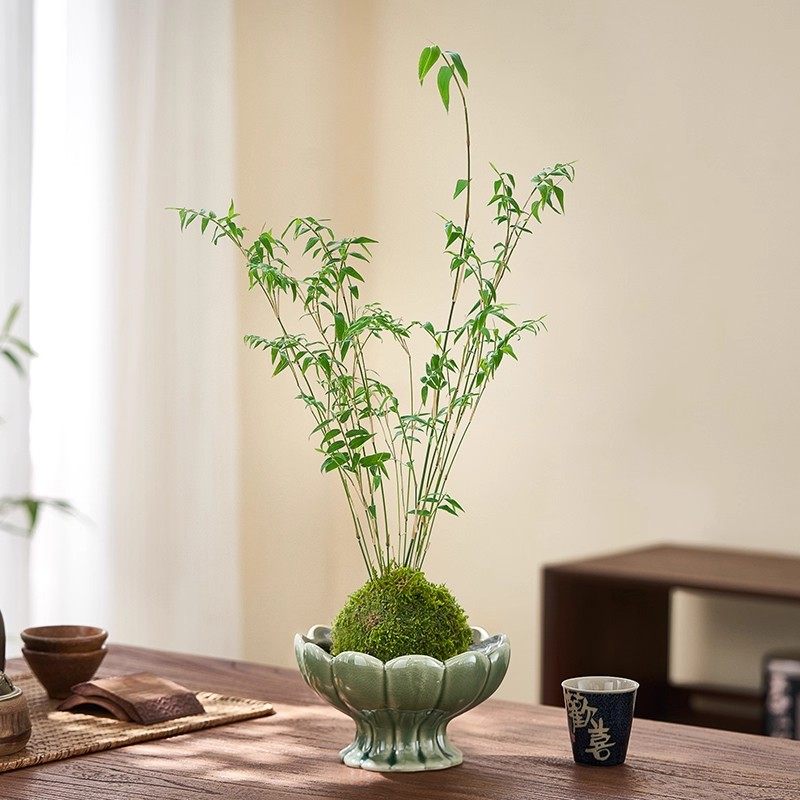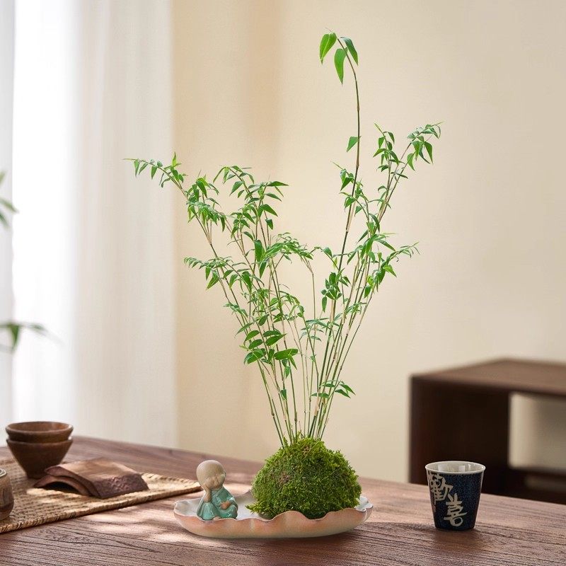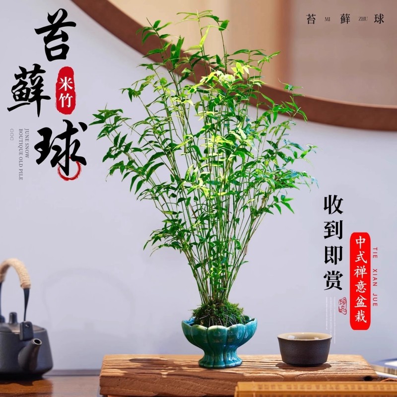 苔藓球植物米竹红杆观音竹水培盆景客厅室内桌面观赏竹子驱蚊盆栽
