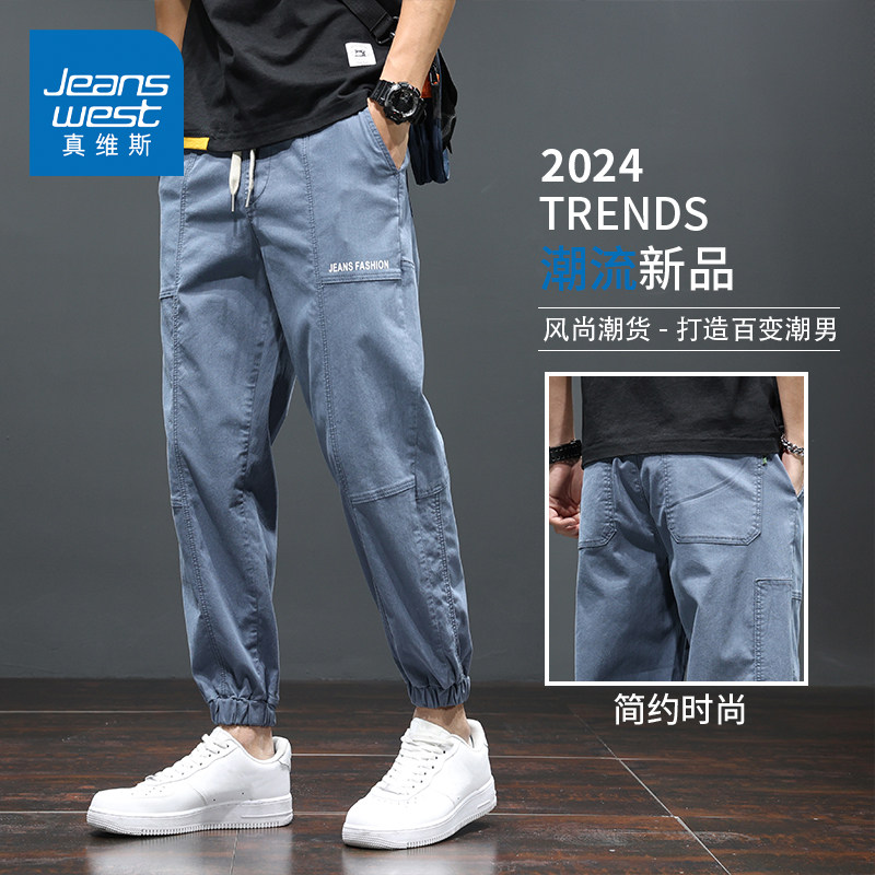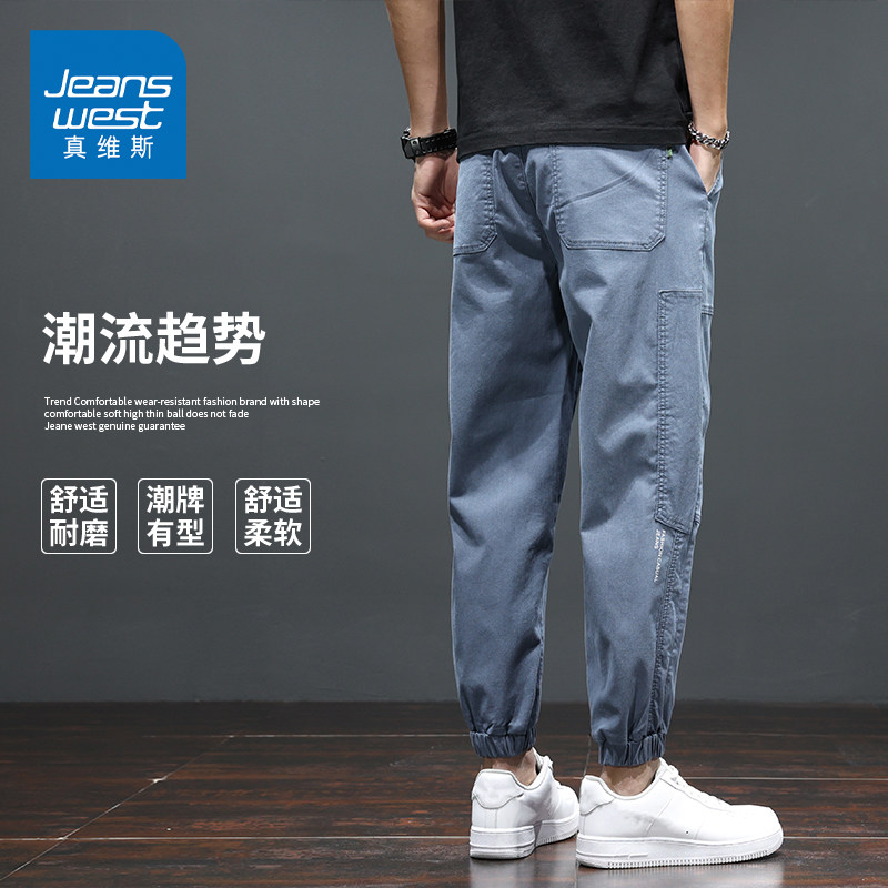 KZH真维斯高街休闲裤男春秋新款宽松束脚裤抽绳潮牌九分运动裤男