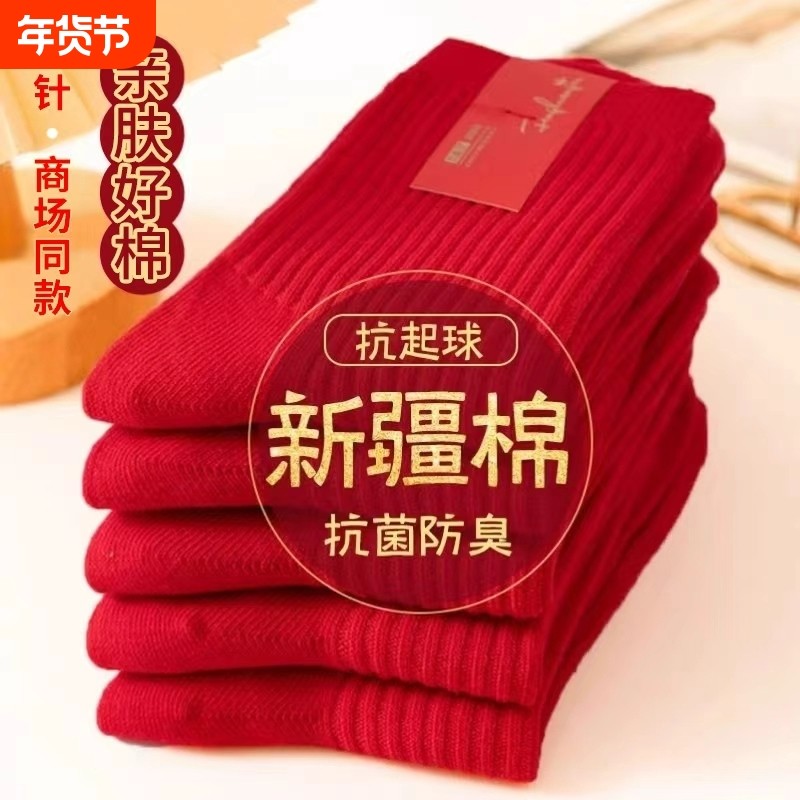 2026红袜子本命年男女秋冬款棉袜中筒袜结婚情侣长袜防臭新款新年