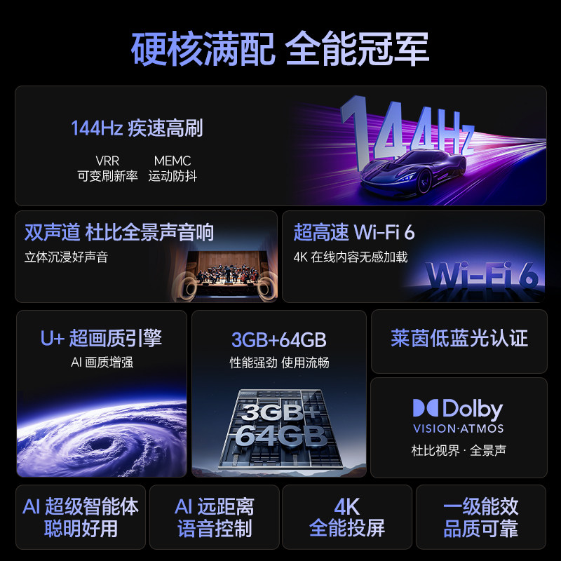 海信电视55E3NH Pro 55英寸 144Hz高刷 大内存 以旧换新电视机