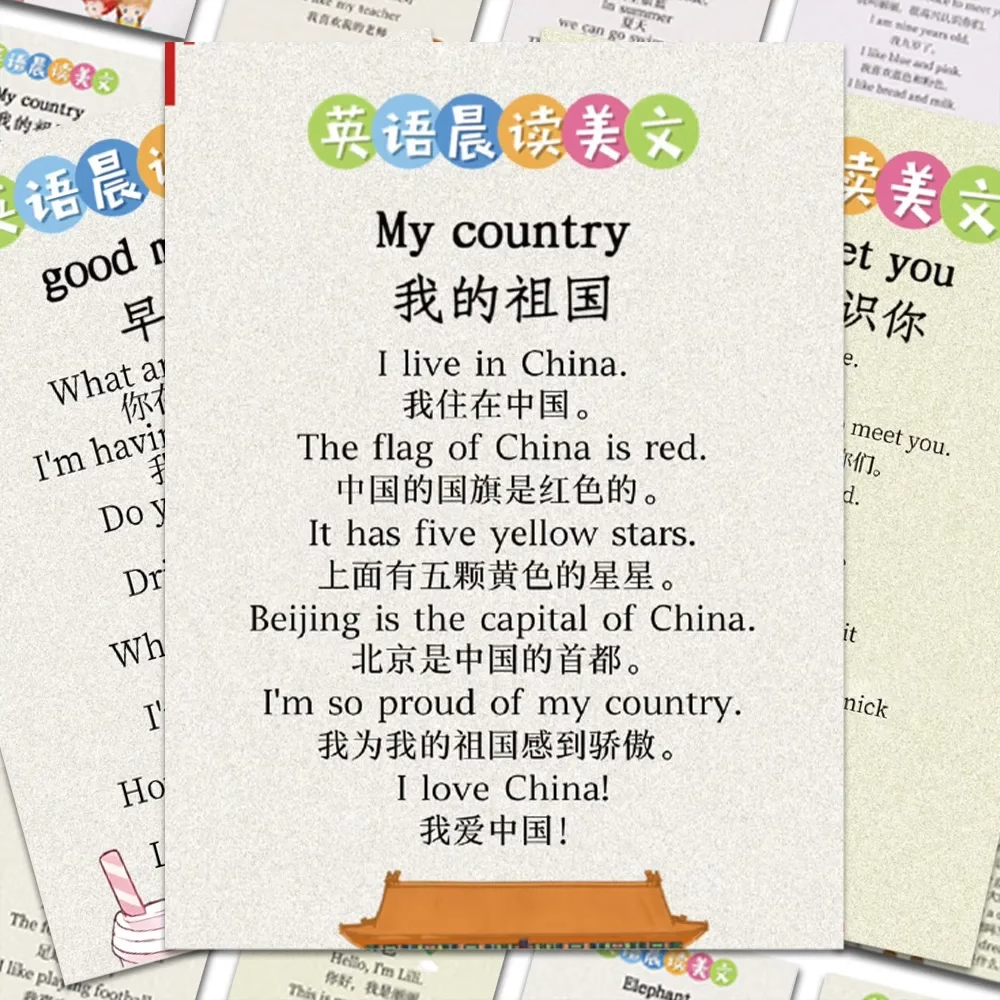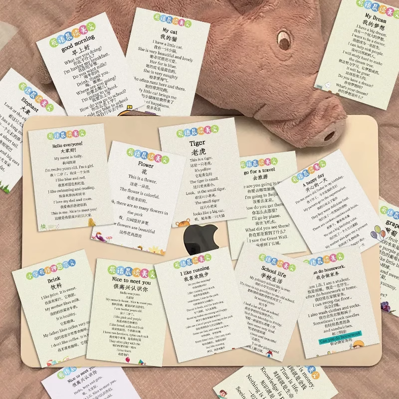 48张英语每日晨读趣味学习贴纸小学生句子阅读启蒙笔记本手账卡片