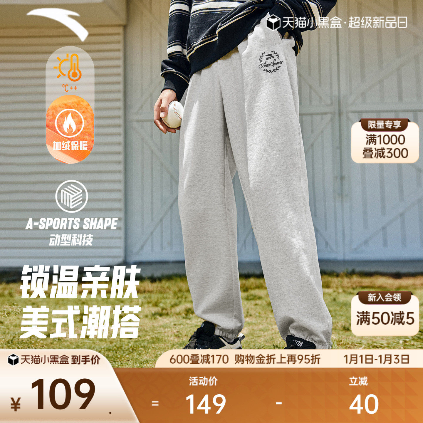 安踏美式复古运动长裤男士潮流休闲束脚裤子宽松百搭针织加绒卫裤