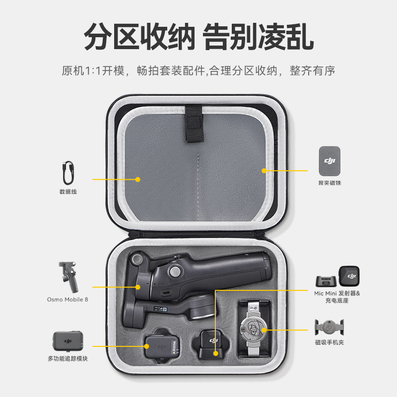 XFJI适用DJI OSMO大疆OM8收纳包 Mobile8云台稳定器便携手提包手拿安全保护防摔防水稳固收纳盒箱配件