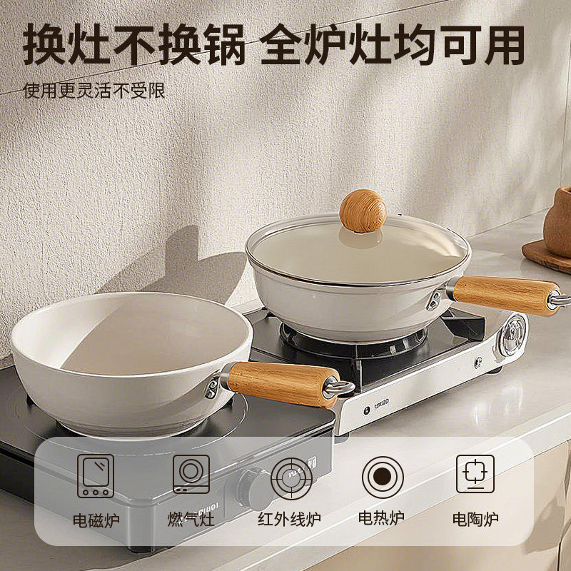 国风陶瓷锅小炒锅不粘锅一人食小锅炒菜锅平底锅电磁炉燃气灶专用
