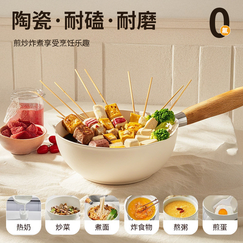 陶瓷不粘锅炒锅平底锅一人食炒菜锅煮面汤锅