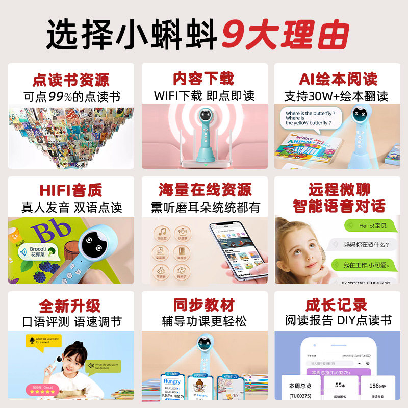 小蝌蚪点读笔a8s万能通用2025款幼儿早教学习神器t6英语分级绘本raz亲子时光海尼曼gk170册小学生初中高中