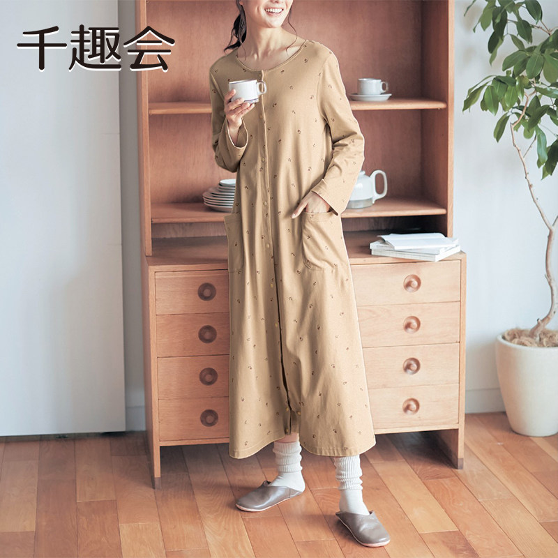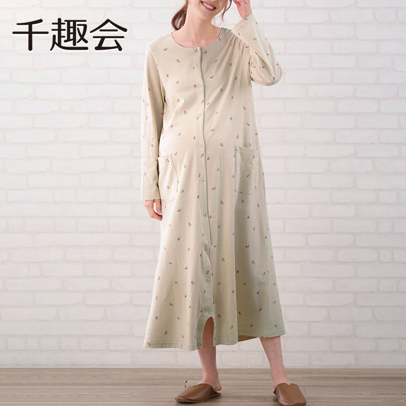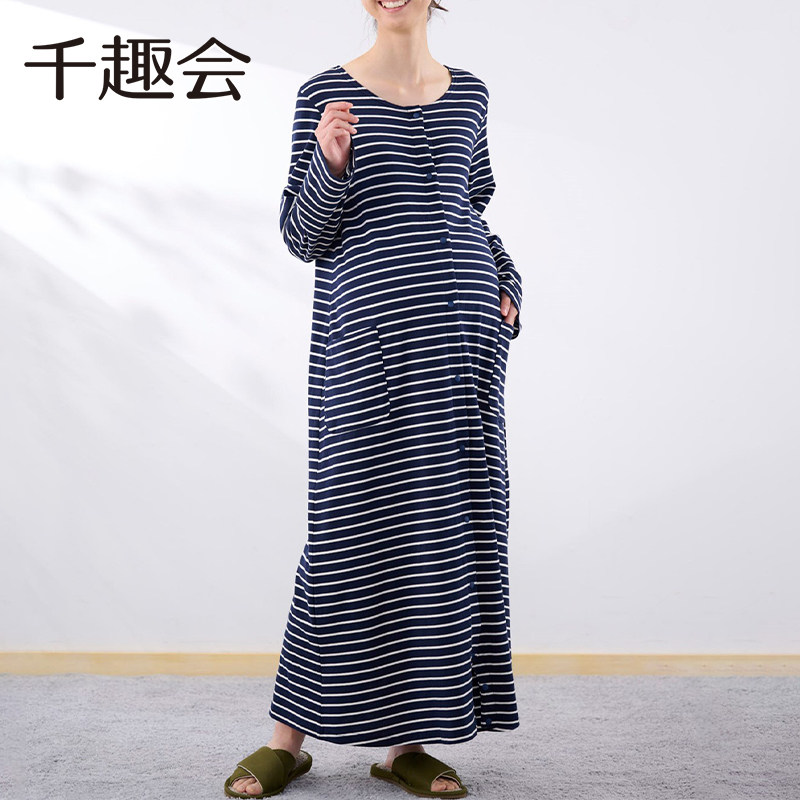 千趣会孕妇装春秋款居家睡裙连衣裙产后方便哺乳两穿棉质长裙子