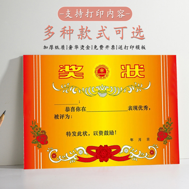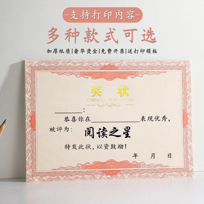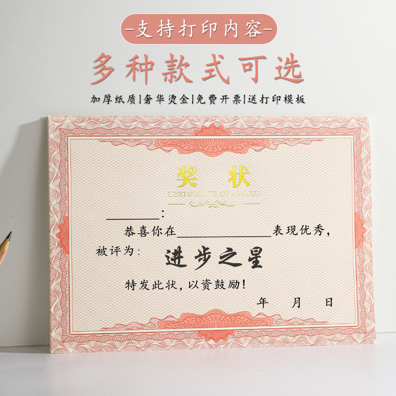 A4烫金奖状纸语数英进步之星三好学生奖状奖励学生可打印定制