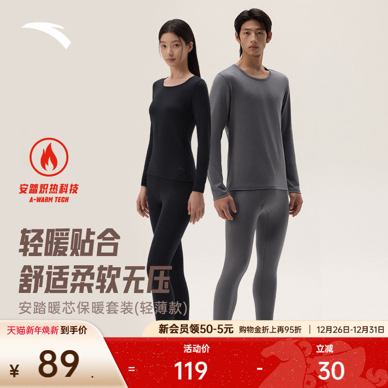 安踏保暖内衣套装男女轻薄打底修身运动紧身本命年秋衣秋裤套装