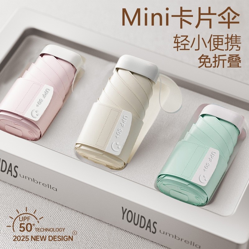 迷你便携颜值口袋超强防晒遮阳防紫外线晴雨两用mini卡片七折扁伞