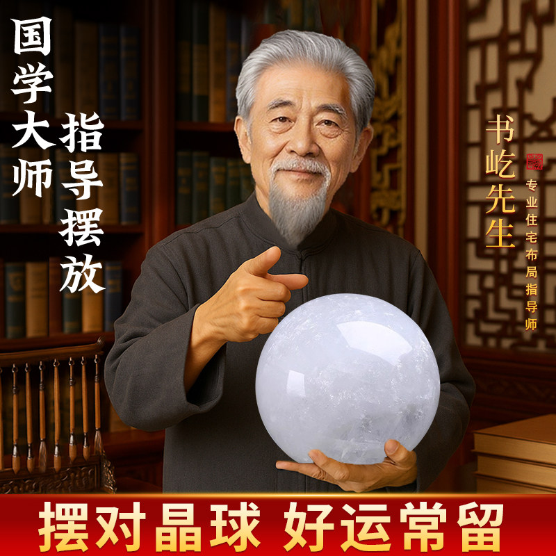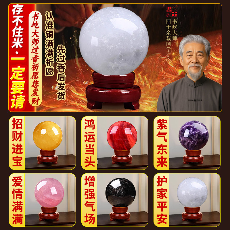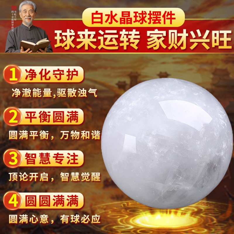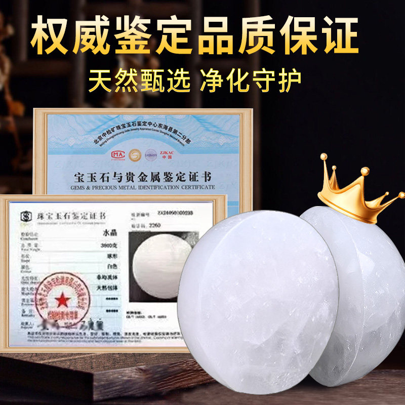天然白水晶球水晶原石打磨招财白色风生水起官方旗舰店水晶球摆件