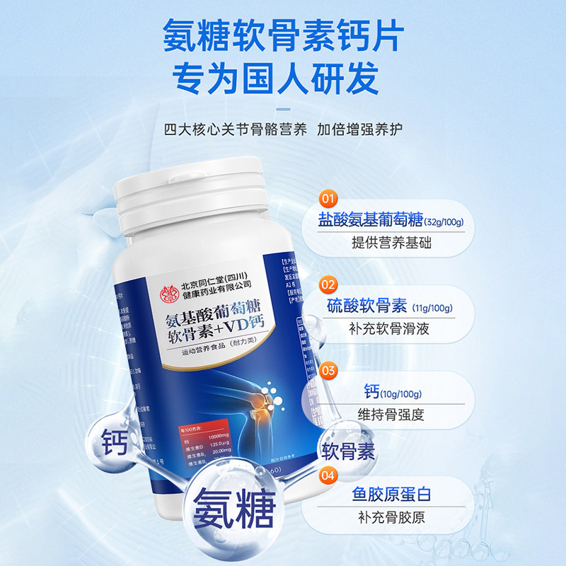 北京同仁堂氨糖软骨素钙片中老年护关节疼痛补硫酸安糖官方旗舰店