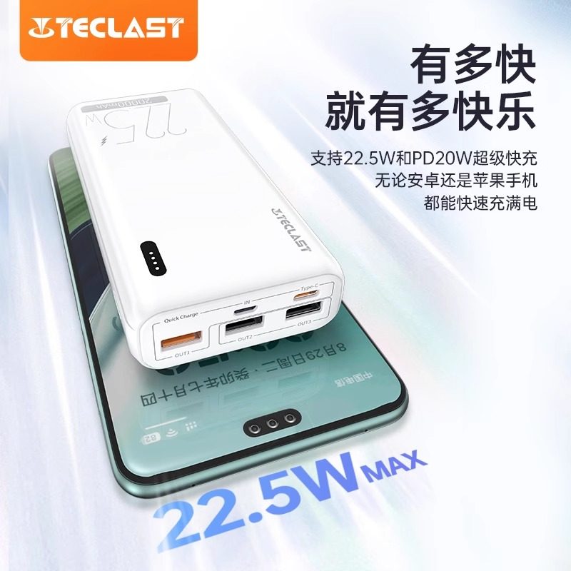 【充电宝3C认证可上飞机】台电2025新款20000毫安大容量22.5W超级快充标识适用小米15苹果17手机专用移动电源