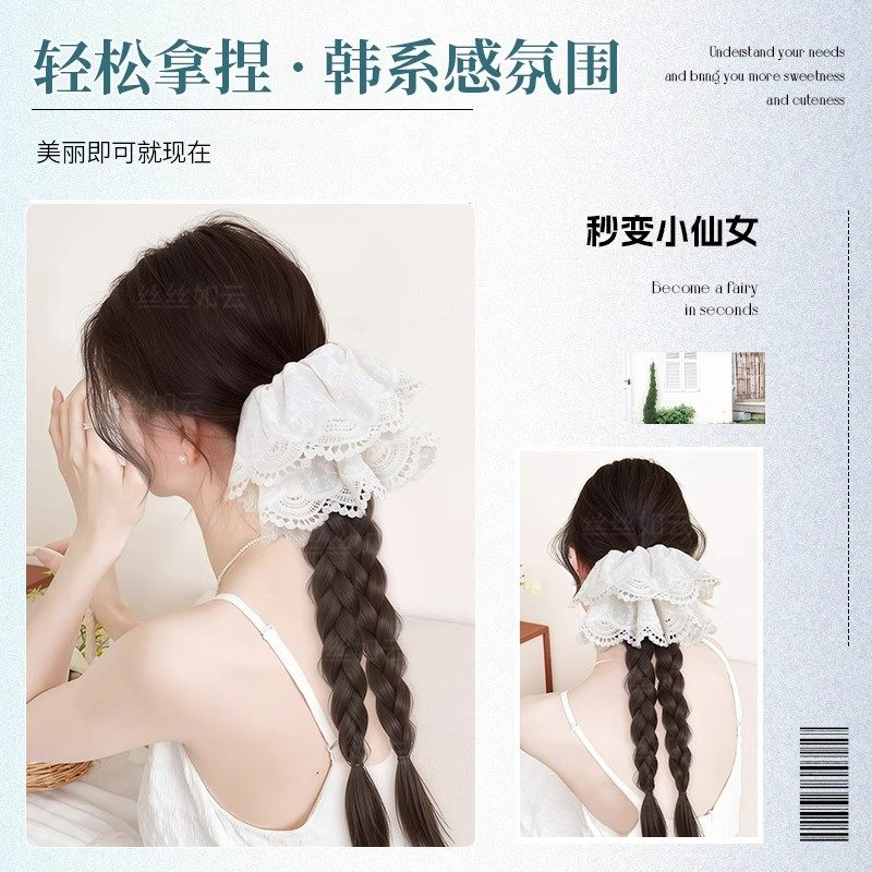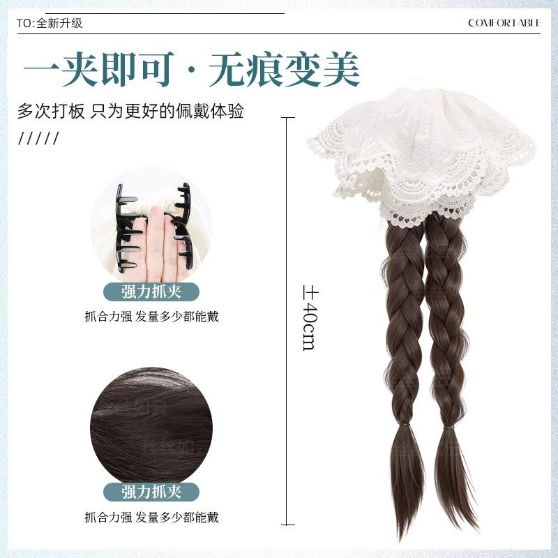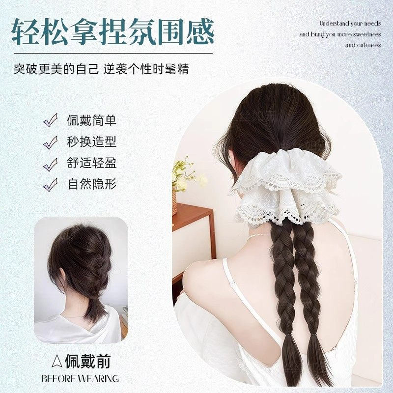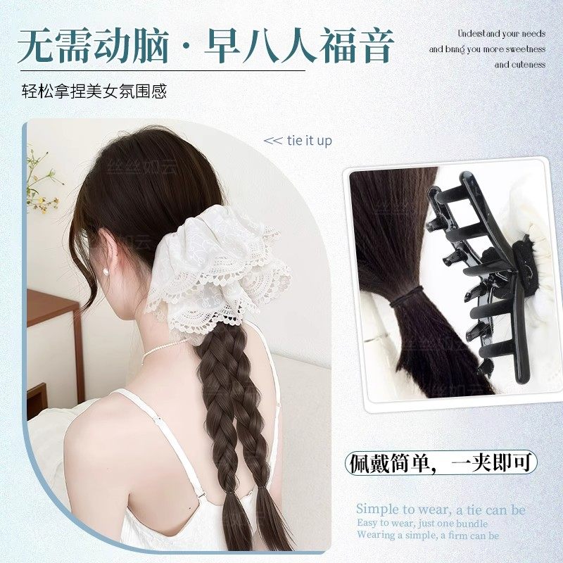 假发辫子女麻花抓夹低马尾蕾丝发饰双新中式长辫仿真发长发辫马尾