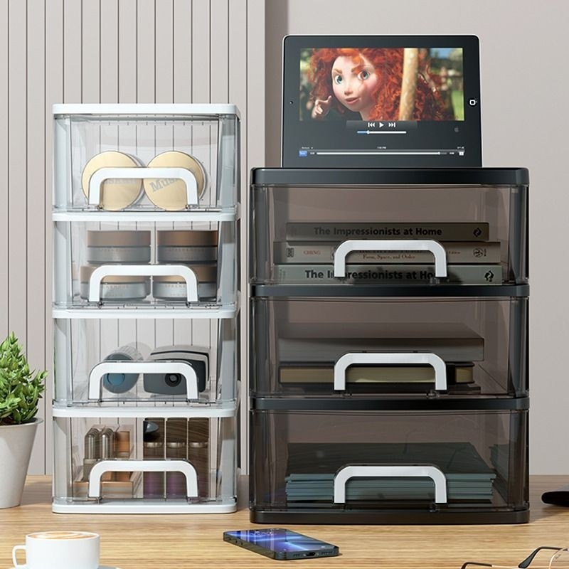 大号可放A4桌面收纳盒收纳柜化妆品护肤品梳妆台面膜抽屉办公透明