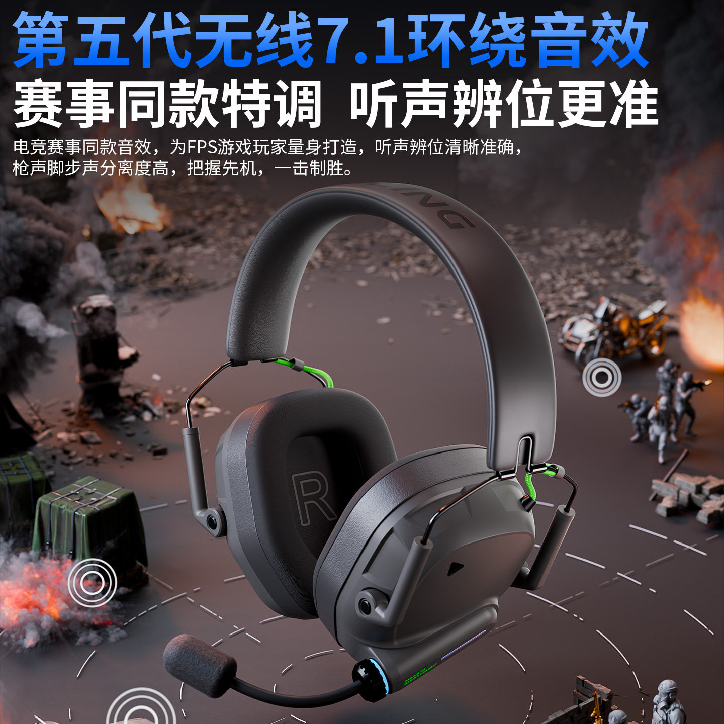 觅声阿尔法2.4G三模无线游戏耳机头戴式蓝牙台式电脑fps电竞专用